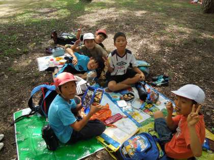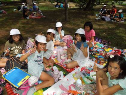 お昼ご飯は京都御苑で4クラスそろってお弁当を食べました。自然の中での食事はとてもおいしかったです。