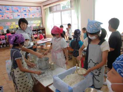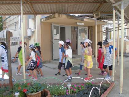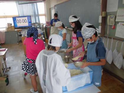 それぞれのエプロンで給食の準備をがんばってくれました。