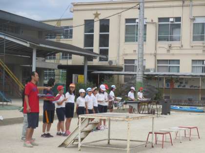 運動会間近となりました。高学年としてはじめての運動会係り活動に取り組んでいる5年生。全校練習では音楽係りや計画委員の子たちが、開閉会式で全校の前で演奏や司会、言葉を言うことをがんばりました。