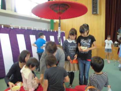 茶道部の子どもたちもお点前を披露。秋の和菓子とともに楽しみました。