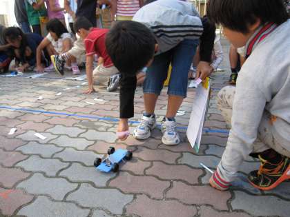 理科の学習でゴム車をつくり,ゴムののばし方で車の動きが変わるかどうかを調べました。どうしたら長い距離を進むのかなど,グループで考えながら,楽しく取り組んでいました。