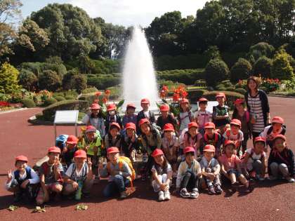 噴水の前でパシャリ!各クラス集合写真を撮りました!
