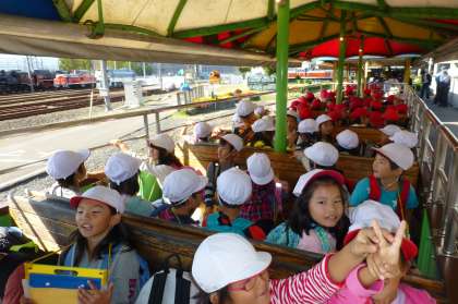 蒸気機関車にのって,みんなドキドキ,ワクワクしていました。