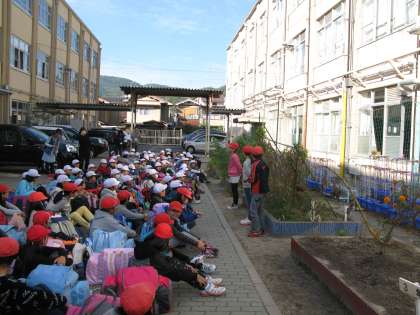 リーダーたちの司会の下,さあこれから山の家へ行くぞ!と