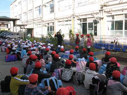 スローガンの掛け声や,挨拶もしっかりして,レインボーロードで