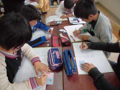 6年生の国語科では、読書活動をして推薦文を書き、後輩たちに贈ろうと取り組んでいます。トレジャーブックを集めて推薦する学習です。