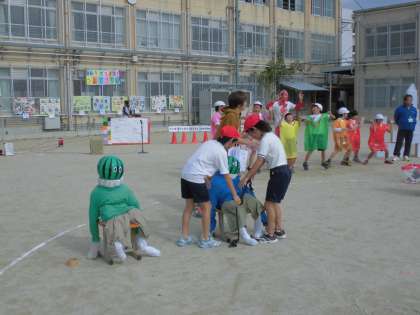わいわい運動会の種目は、とっても工夫されています。会場校の子どもたちと交流できるような種目になっています。一緒に「わいわい」楽しむことができましたね。