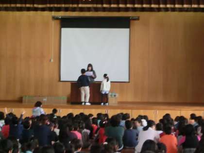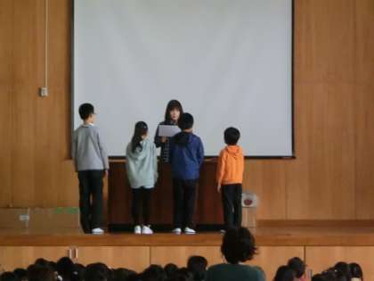 今日は,6年担任の梅田先生が絵本の読み聞かせをしました。「やさしいあくま 」というお話から,『人の痛みや命,優しさ』について考える時間になったと思います。教室でも,感想を述べ合ってください。その後,書写や図工において,優秀な作品をつくったお友達に賞状が贈られました。おめでとうございます。