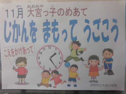 今月の大宮っ子のめあては、「じかんをまもってうごこう」
