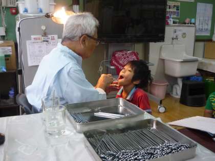 歯科検診にも慣れた様子の3年生です。大きな口を開けて,歯科医さんに診ていただきました。