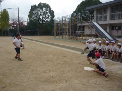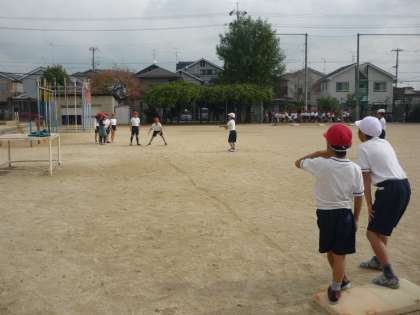 3年生は今,ハンドベースボールを学習しています。全員が安全に,楽しんでプレーができるように,ルールや作戦についても話し合いました。みんな協力しながら,楽しんで学習しています。