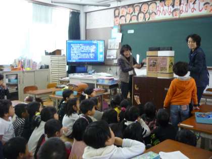 1年生は,もこもこさんに読み聞かせをしてもらっていました。真剣な様子で聞いていました。