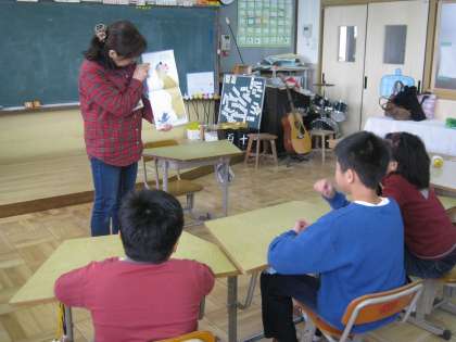 3時間目にPTAサークルお話の会「もこもこ」さんから読み聞かせをしていただきました。