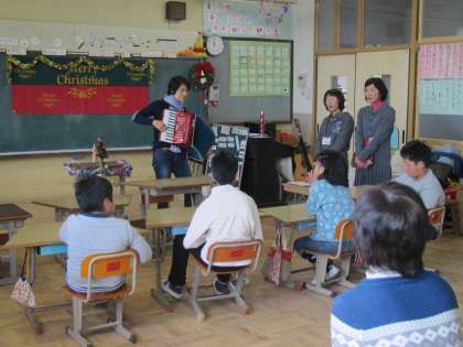 9日(火)は,毎月恒例のもこもこさんの読み聞かせがありました。毎月この日を楽しみにしているそらいろ学級ですが,今回は12月ということで,クリスマスにちなんだスペシャルバージョン!教室もきれいに飾りつけをしていただき,アコーディオンに合わせたコーラスと,クリスマスにちなんだ絵本特集の読み聞かせでした。