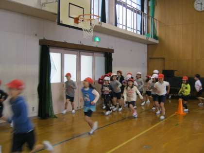 体育館の中で10分間マラソンをしましたが,冬休みで体がなまっているのかな?
