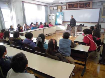 どんどの行事を通して、地域の伝統行事について3年生が地域の方からお話を伺っています。「どんど」の行事が行われる今日、奥村さんからお話を聞かせていただきました。