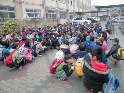 遠足に出かけるかのように、楽しそうな3年生の笑顔でした。「行ってらっしゃい!」