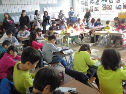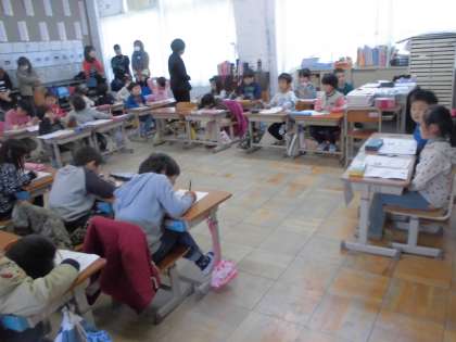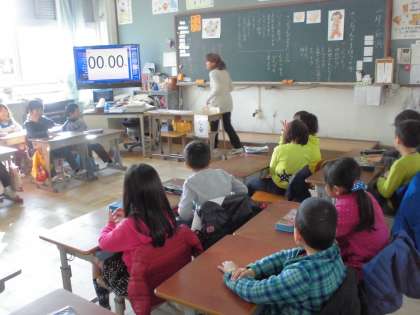 1年生は道徳。大きな挿絵を見ながら、オオカミの行動について考えていました。自分たちの行動には、似たことはないかな?お友達にやさしい人でいたいね。