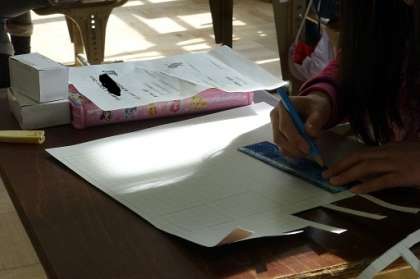 長さをはかって,切って,張り合わせるのはけっこう難しかったようですが,