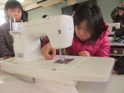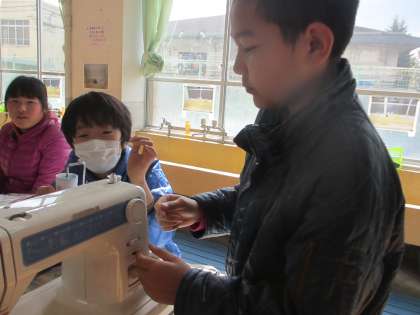家庭科の時間にミシンを使っての学習を進めています。まずはボビンに糸を巻きつけます。くるくるとうまく回る様子をみて「おぉ〜!」と感激の声も聞こえました。嬉しそうです。