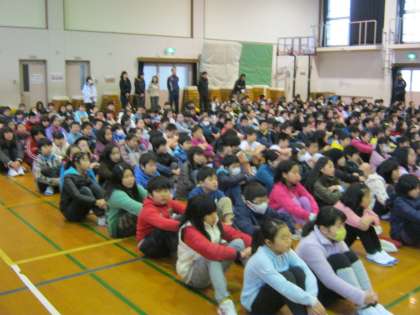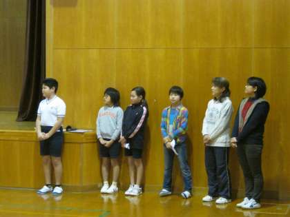 先週のことになりますが,給食週間の朝会で,