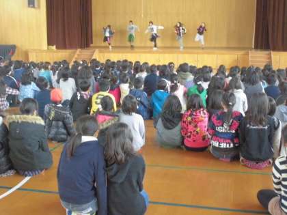 「まだ、完璧にはできないんです」と言っていた子どもたちでしたが、全校のみんなの声援のなか、チームワークよく頑張って披露してくれました。