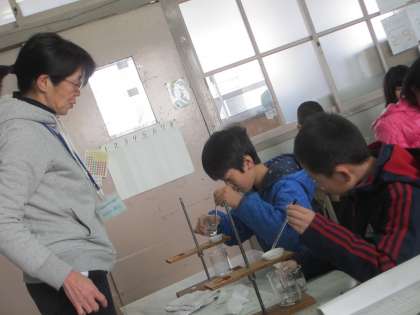 理科の時間は「もののとけかた」について学習をしています。今日は、「ろか」のテストをしました。授業のはじめに手順を確認して、実際にろ紙やビーカーをつかってのテストです。どきどきしながら順番を待っている子もいました。合格したら、先生から賞状を受け取ります。この日は受験した全員が無事、合格することができました。おめでとう!