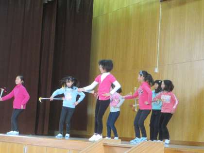 木曜日の中間休みはクラブ発表がありました。ダンス・バトンクラブの子たちの発表です。5年生も活躍しています。この日のために、クラブの日だけでなく、中間休みや昼休みに集まって練習を重ねてきました。