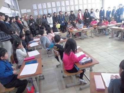 1年生のいっしょうけんめいな発表の姿を見ていると、おうちの方に聞いてほしいという思いがよく伝わってきました。授業の終わりには、参観されていたお父さん・お母さんの感想を聞かせていただきました。うれしそうに聞いている子どもたちでした。