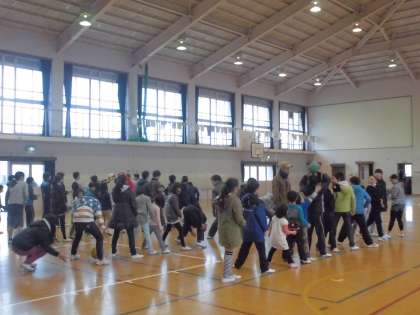 また、少年補導委員会の皆さんが、毎月開催していただいている「ふれあい教室」も体育館で開催していただいたので、いっしょに遊びました。