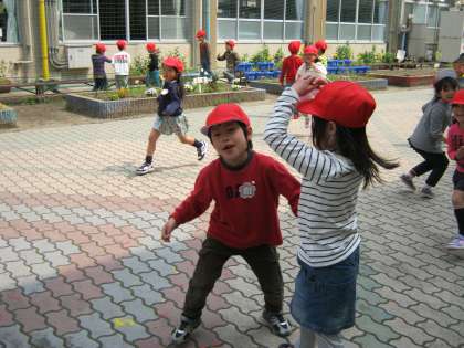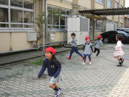 安全のために、いままで休み時間は教室や学校探検などをしていましたが今日から一年生はレインボーロードでも遊んで良いことになりました。今日はお天気にも恵まれ、お友達と鬼ごっこをしたりして思い切り体を動かすことができました。