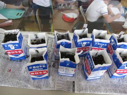 ツルレイシの種を植えました。何日で芽が出るかなぁ・・・と子どもたちは楽しみにしながら植えていました。