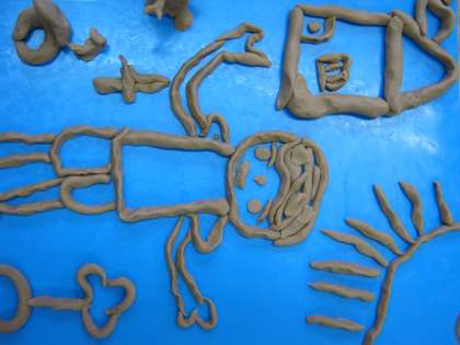 図工『ひもひもねんど』で子どもたちが作った作品です。渦巻きにしたり,ハートにしたり子どもたちの工夫がいっぱい詰まっています。