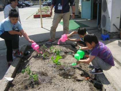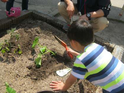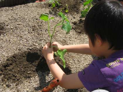 昨日観察した苗を,今日は植えました。