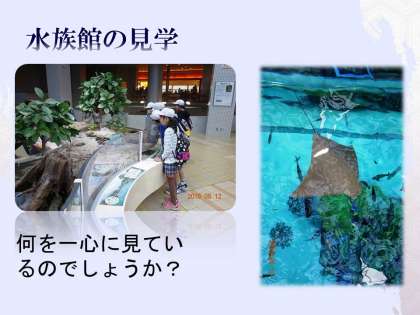 ようやくランチタイムも終わり,子どもたちはグループで自由に見学。私は本部にいたので,その様子を見ることはできませんでした。でも,ちょこっと館内を回ると,椅子に座ってぐったりしている子どもたち。魚は元気にグルグル泳ぎ回っていますが,子どもたちは歩き疲れたようです。