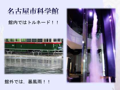 水族館を出る頃には,大分雨足が強くなってきました。次に向かうは,名古屋市科学館。