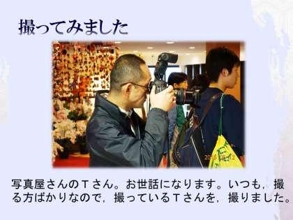 いつも,写真ばかり撮っている写真屋のTさん。撮ってもらう機会も,そうそうないだろうということで,写真を撮っているTさんの様子を,私が撮りました。