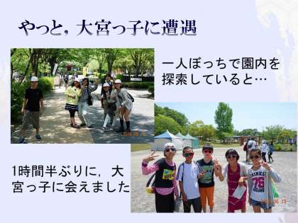 歩き続けて1時間以上して,やっと会えました。みんな,サーカスを見ていたそうです。ここでも,少し買い物ができたようです。向こうからヒップホップでもやりそうな一団がきたのですが,大宮っ子たちでした。なかなか似合っています。