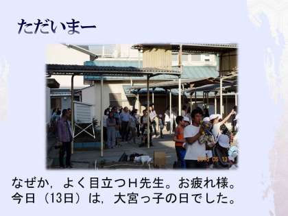 そうそう,6年生のH先生が写っているでしょう。H先生を見ると思い出すのです。