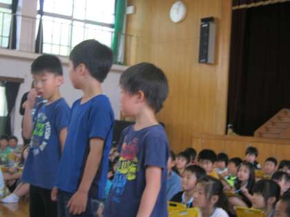 4月から、準備してきた学校探検をしました。1年生を前に、挨拶や約束を確認しました。1年生に伝わるように大きな声で、ゆっくり言えました。