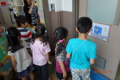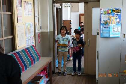もう一度,「どうしました?」と聞くと,なが〜い沈黙の後に,「学校探検」という小さな声が聞こえました。なるほど,2年生が1年生を連れて,学校を案内してあげているんだ。緊張しまくる2年生に対して,1年生は連れて行ってもらうほうですから,気楽です。ぽかーんとした顔をして,私の顔を見入っています。
