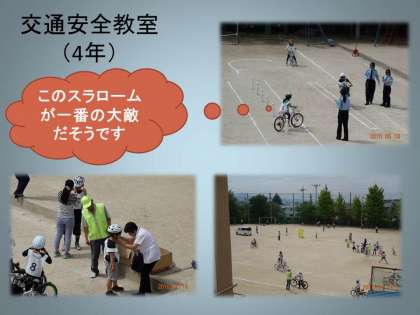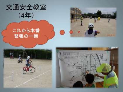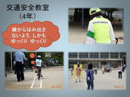 今日は,交通安全教室の日です。4年生が学習しました。この教室のために,警察の方々,地域交通安全推進委員の皆さん,そして保護者の皆さんのお世話になりました。暑い中,本当にありがとうございました。