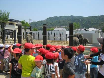 晴天のなか、京都市動物園にでかけました。たくさんの小学生・幼稚園児・保育園児でにぎあう中、クラスで見学したり、午後からはグループ活動をしたりと、仲良く行動できました。