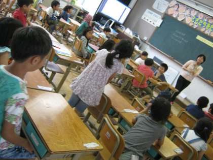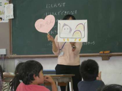今日は、栄養教諭の先生から京都でよく食べられてきた料理である「にしんなす」について色々なことを教えてもらいました。先生手作りの紙芝居が出てきたりと、とても楽しい時間でした。ニシンとニシンの油やおいしさを吸ってくれるナスはとても良い組み合わせ、「であいもん」であることを学びました。明日の給食はその「にしんなす」です。今からとても楽しみです。