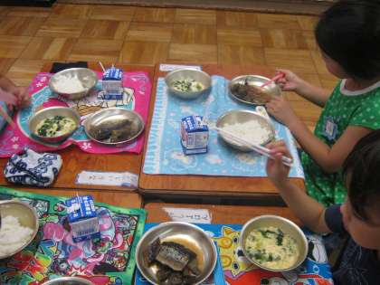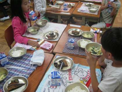 給食に「にしんなす」がでました。子どもたちは前日に京都でよく食べられてきたにしんなすについて学習しています。なすにニシンのうまみがしみ込んでいてとってもおいしかったです。ニシンも骨が柔らかく、骨まですべて食べることができました。おかわりをしている子もいました。