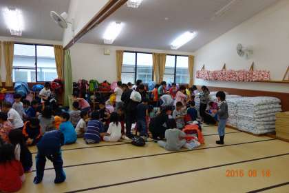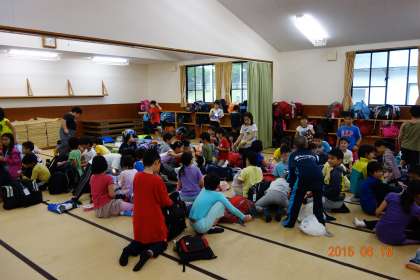 石拾いをして、そのあとお風呂。お風呂から上がってきた子どもたちは、ざっとこんな状態です。90畳の部屋なのですが、ラッシュアワー状態。