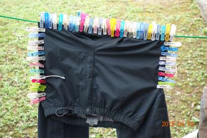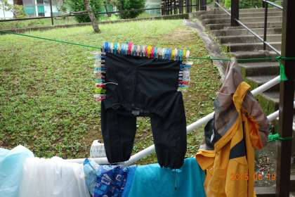教務主任のK先生のレインスーツが干してあったので、ちょっとアートしてみました。