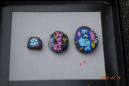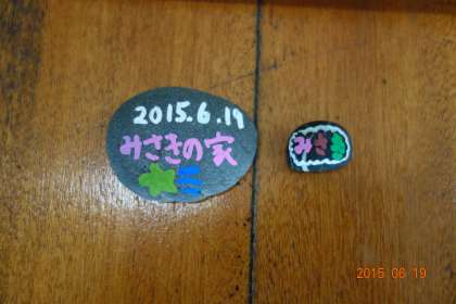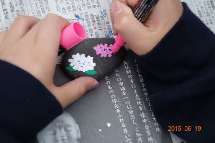 絵心がありますね。かわいらしい絵が出来上がってきます。これは、一生の思い出になると思います。ペーパーウェイトとしても、使えますね。ただし、小指の爪ほどの石を拾ってきている子どももいましたから、カワイイ飾りにでもなるのでしょうね。