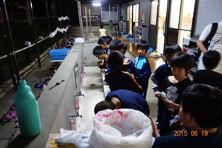そうかと思えば、一心に歯を磨いている男子たち。せっかく君たちがきれいに敷いた布団の上を、まだ敷けていない面々が踏むもんだから、ここもかしこも毛布がしわくちゃだらけになっていますよ。