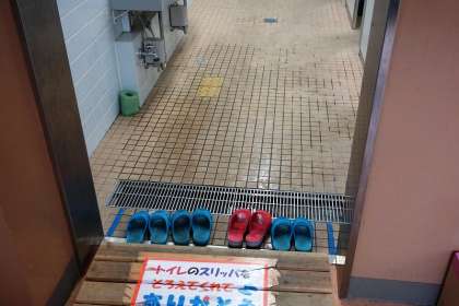 クラスの履物がきちんと揃えられている階のトイレは,比較的スリッパもきれいに揃えられています。